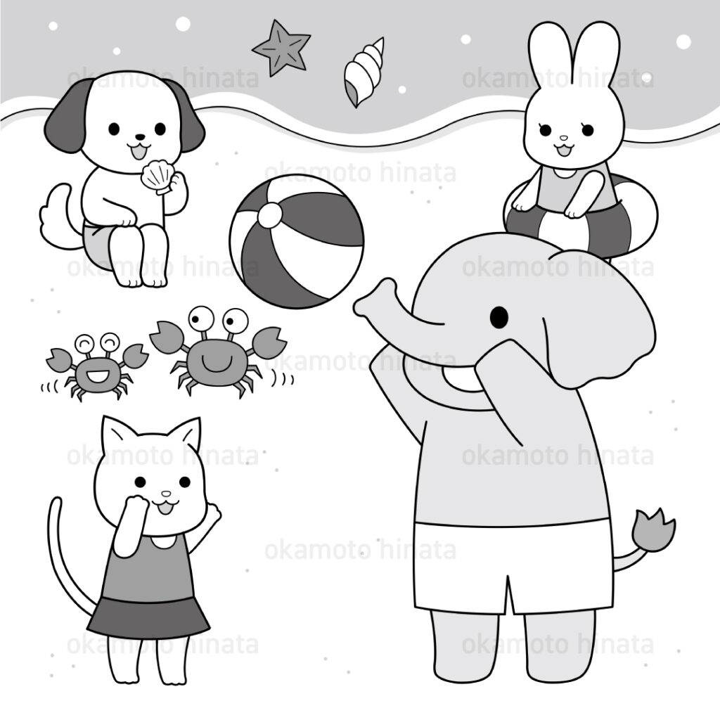 カラー・モノクロの両方に対応できます。モノクロイラストは塗り絵や教材、ワークシートに最適です。